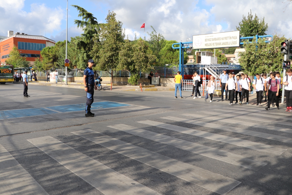 Özellikle trafiğin yoğun olduğu okulların önlerinde görev yapan zabıta ekipleri, sabah ve akşam saatlerinde trafik akışını düzenleyerek öğrencilerin kontrollü şekilde karşıya geçmelerine yardımcı oluyor.