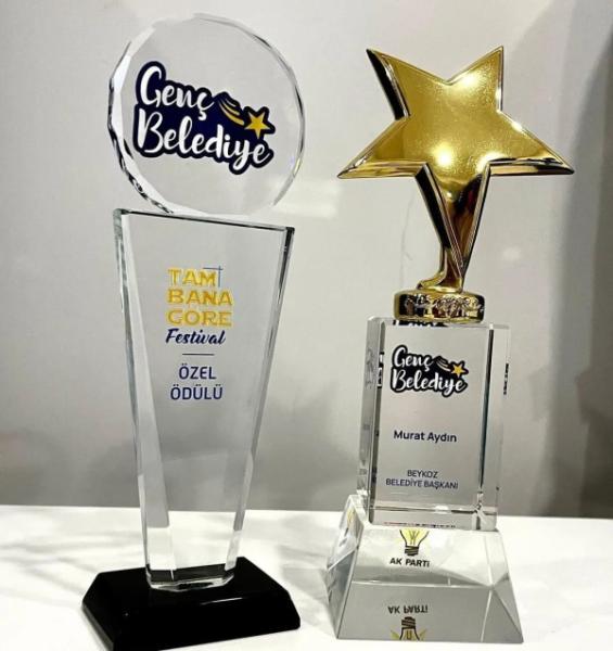 Ödülü, Beykoz Belediye Başkanı Murat Aydın, AK Parti Genel Merkez Yerel Yönetimler Gençlik Modellemeleri Ege Bölge Koordinatörü Nuh Dursun Ozan’ın elinden aldı.