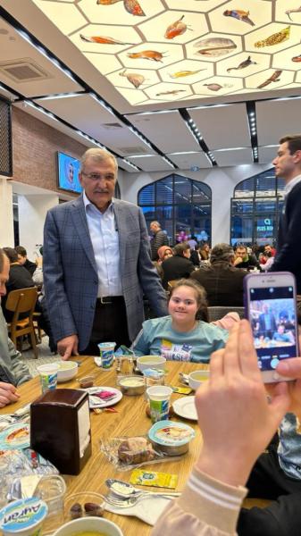 Akşam ezanından önce masaları tek tek dolaşarak misafirlerine hayırlı ve güzel bir Ramazan Ayı dileyen Başkan Murat Aydın, kendisini sevinçle karşılayan özel çocuklar ve gençlerle hasbihal etti.