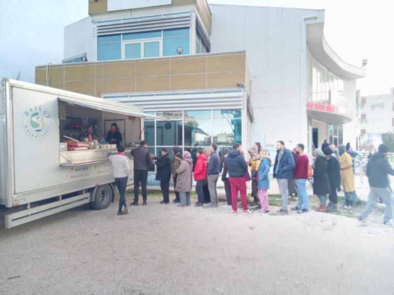Afetzede vatandaşların yemek ihtiyacı için bölgede bulunan Mobil Çorba Dağıtım Aracı da, Hatay Kırıkhan Gençlik Merkezi yanında sıcak çorba dağıtarak çalışmalara lojistik destek veriyor.
