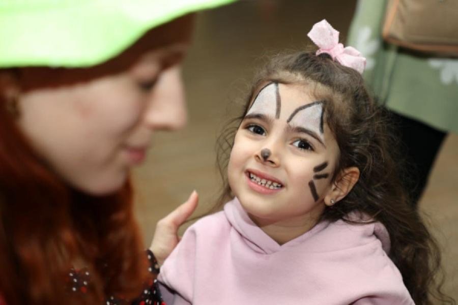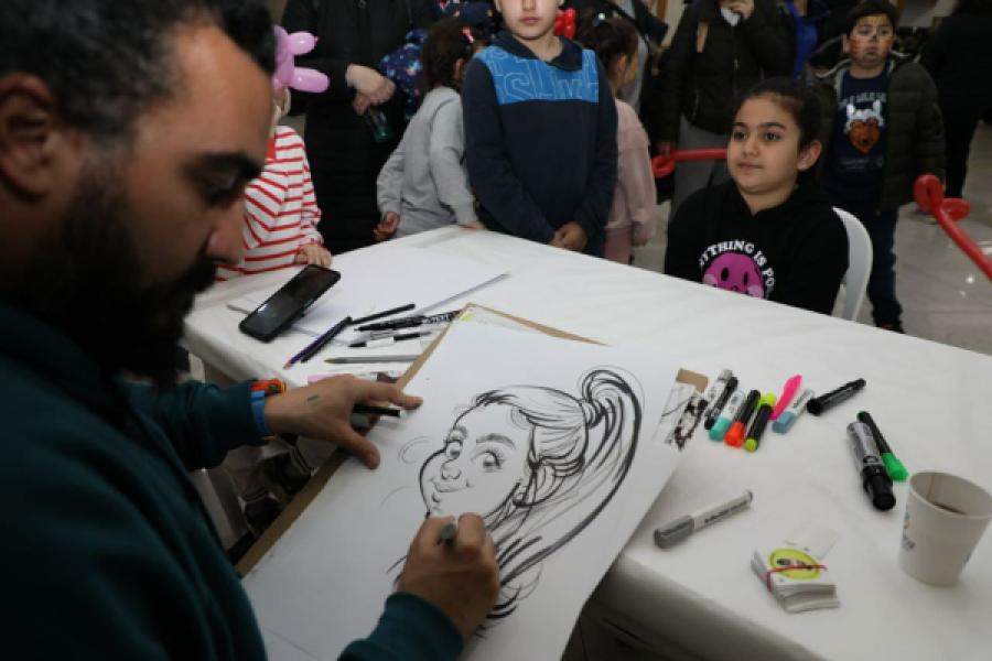 Merkezi cıvıltılarıyla şenlendiren çocuklar en çok da karikatür ve yüz boyama standında vakit geçiyor. Palyaçoların ellerinde sevimli bir masal kahramanı ya da hayvana dönüşen miniklerin karikatürleri de çiziliyor.