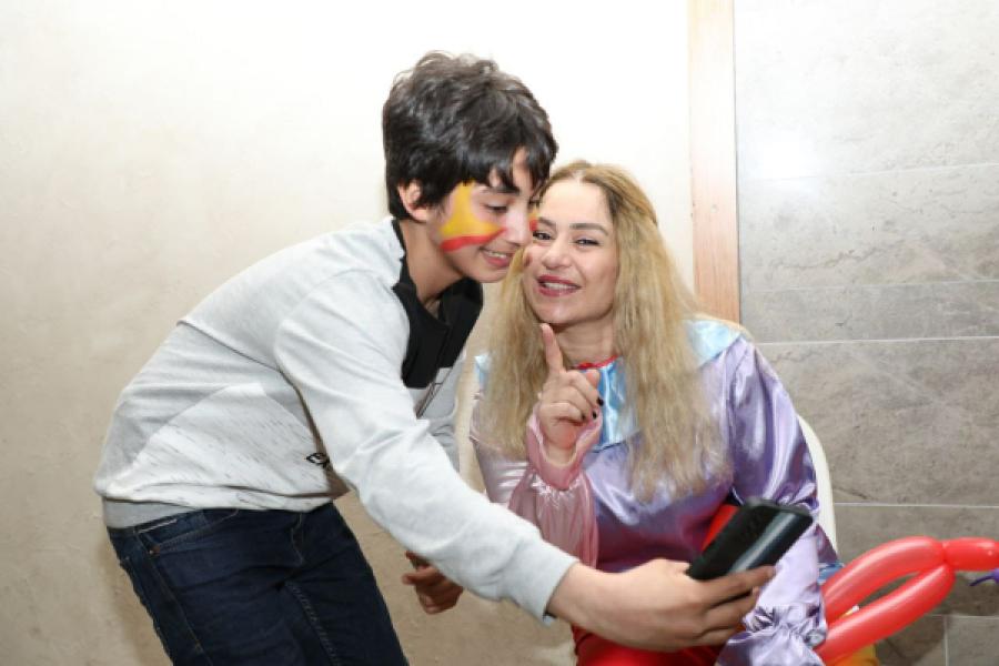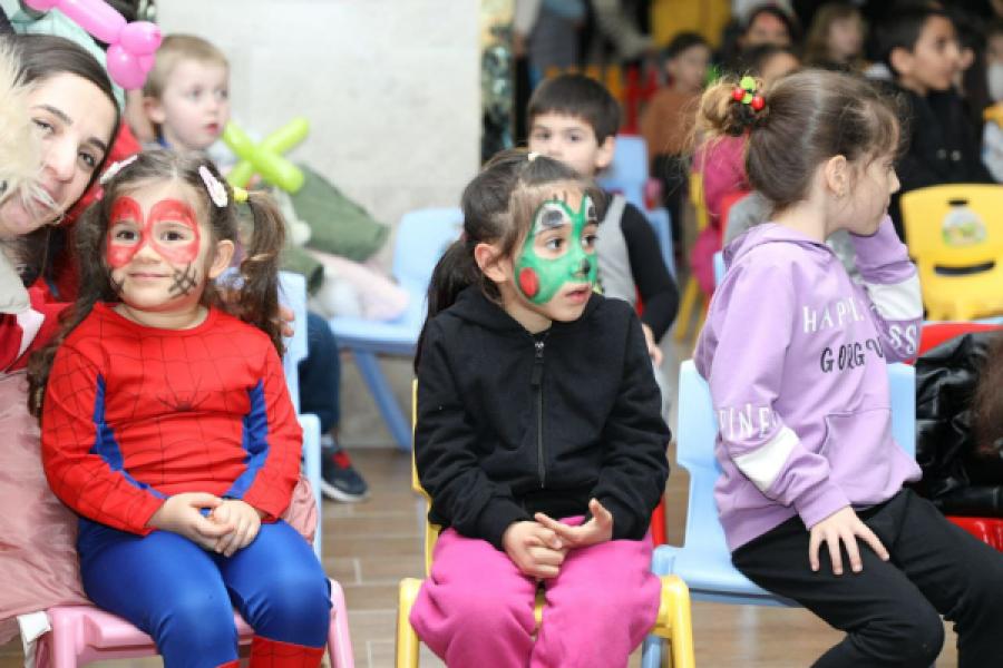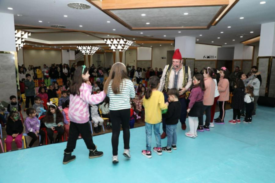 Kendileri için hazırlanan jonglor gösterisini de merakla izleyen çocuklar zaman zaman animatörlere eşlik ediyor.