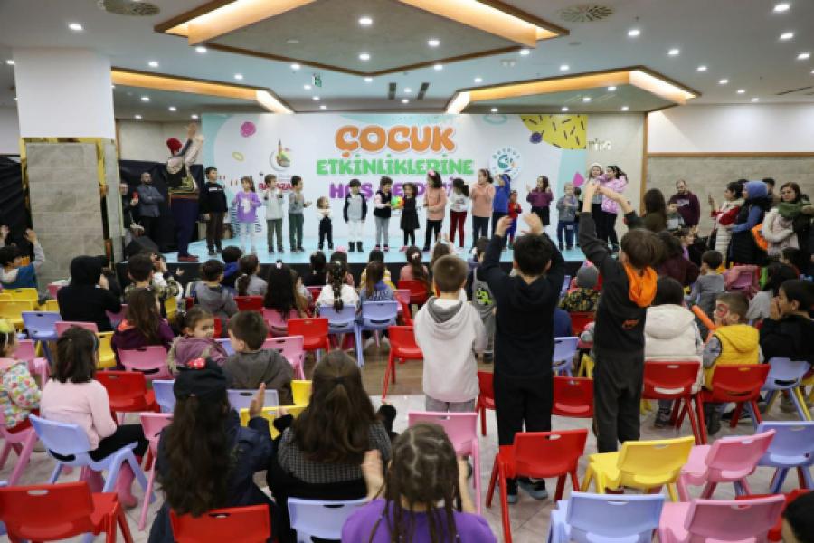 Aileleriyle iftar sonrasında merkeze gelen çocuklar için ilk önce illüzyon ve vantrolog sanatçıları sahneye çıkıyor.