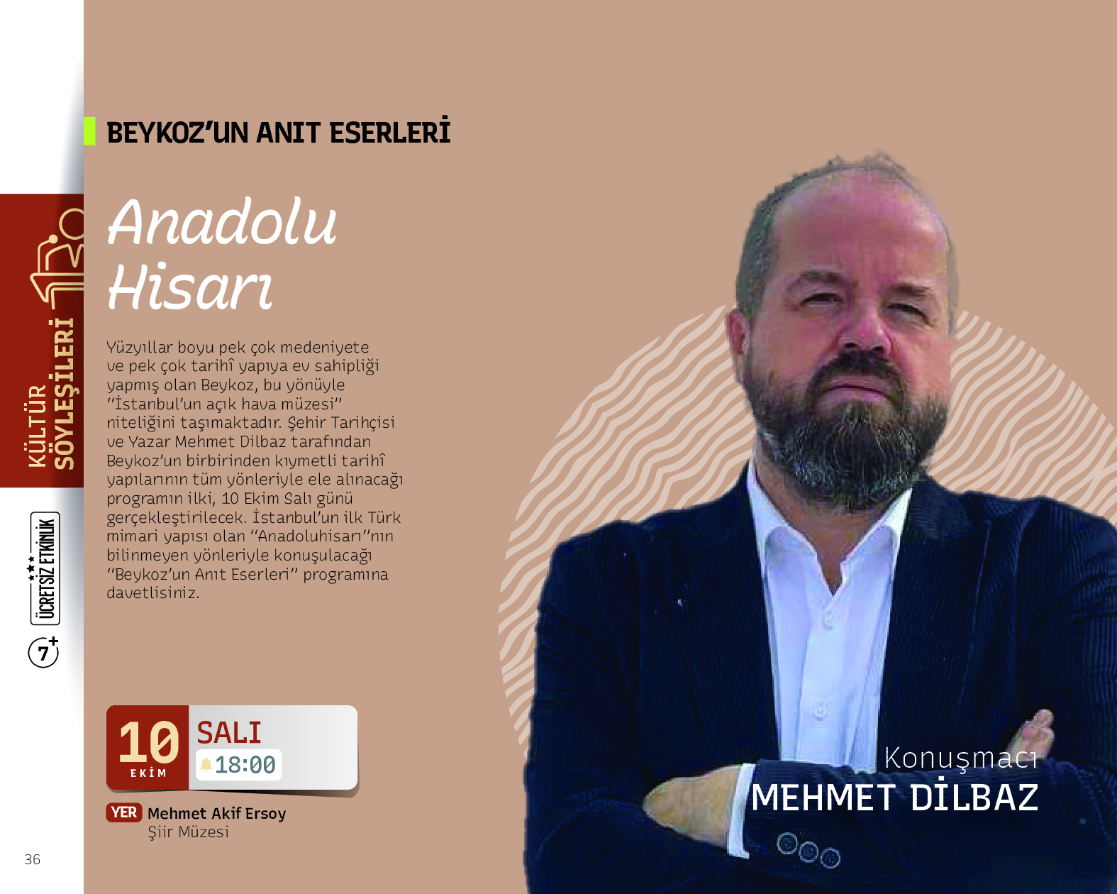 Şehir Tarihçisi ve Yazar Mehmet Dilbaz tarafından Beykoz’un birbirinden kıymetli tarihî yapılarının tüm yönleriyle ele alınacağı “Kültür Söyleşileri”nde ilçenin simgelerinden “Anadoluhisarı Kalesi” tanıtılacak.