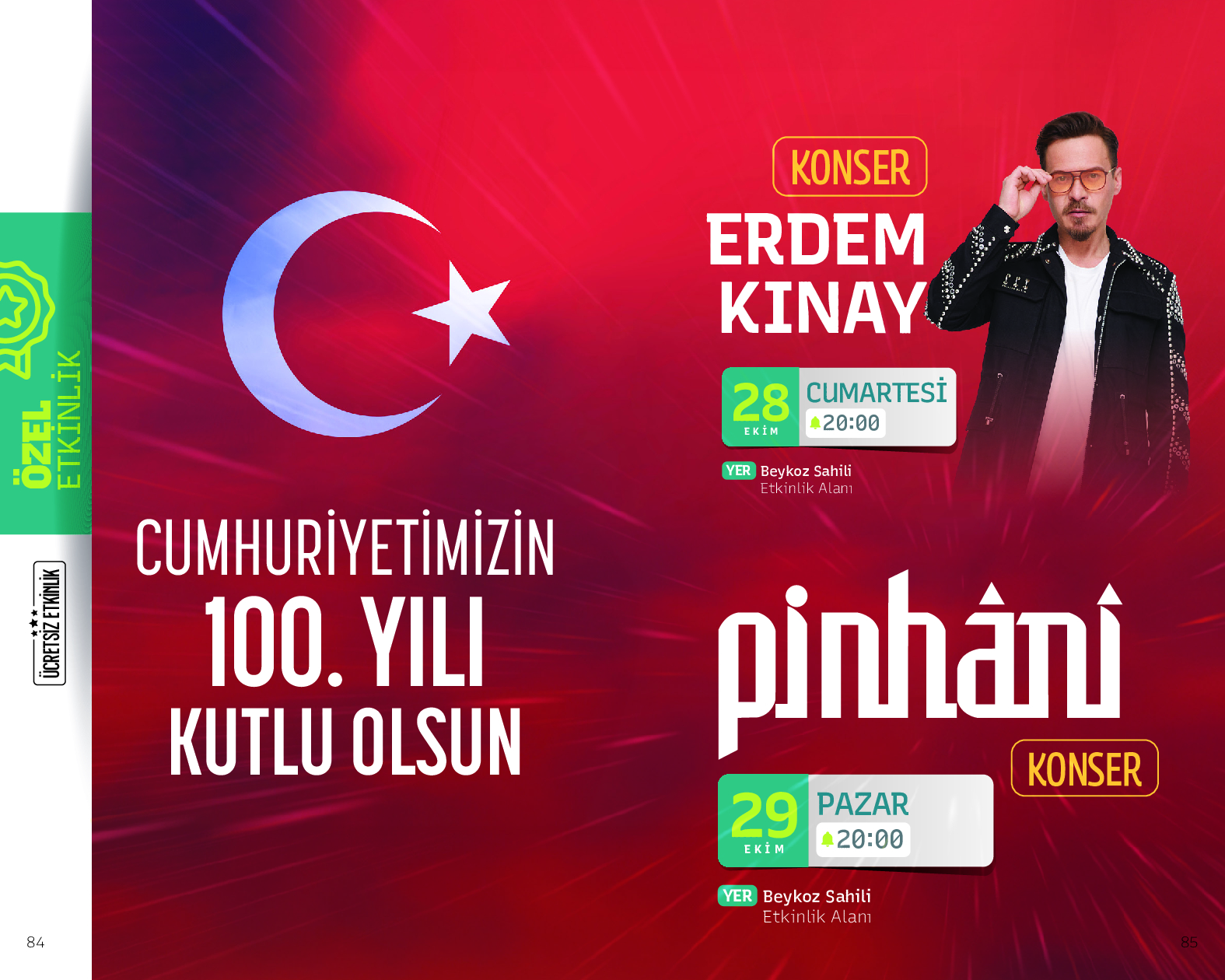 Ülke genelinde heyecanla beklenen Cumhuriyet’in 100. yılı kutlamaları Beykoz’da, özgün tarzıyla her yaştan müzikseverin severek dinlediği “Pinhâni Grubu” ve “Erdem Kınay”ın konserine ev sahipliği yapacak.