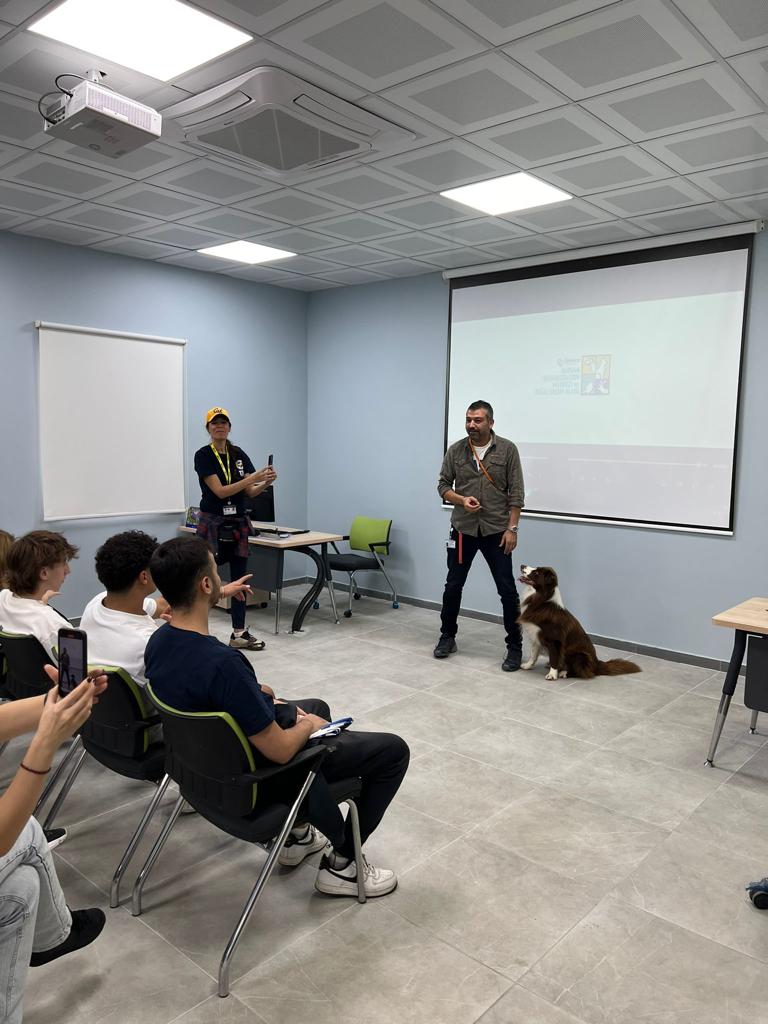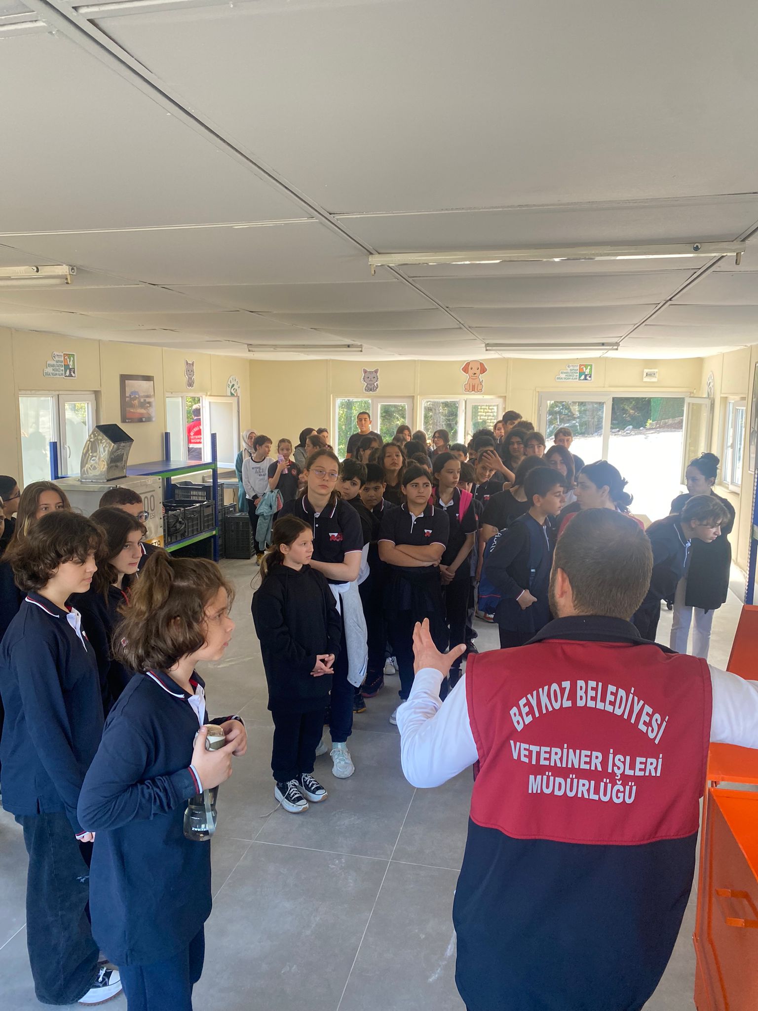 Ardından öğrenciler, merkezde görevli veteriner hekimlerle birlikte, kedi ve köpeklerin bakıldığı üniteler ile “Doğal Yaşam Alanı”nı gezdi ve verilen hizmetler hakkında bilgi aldı.