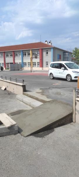 Yeni yıl öncesinde verilen eğitim desteği kapsamında engelli öğrencilerin kolay erişimi için talep edilen okulların giriş ve bahçelerine engelli rampaları da yaptı.
