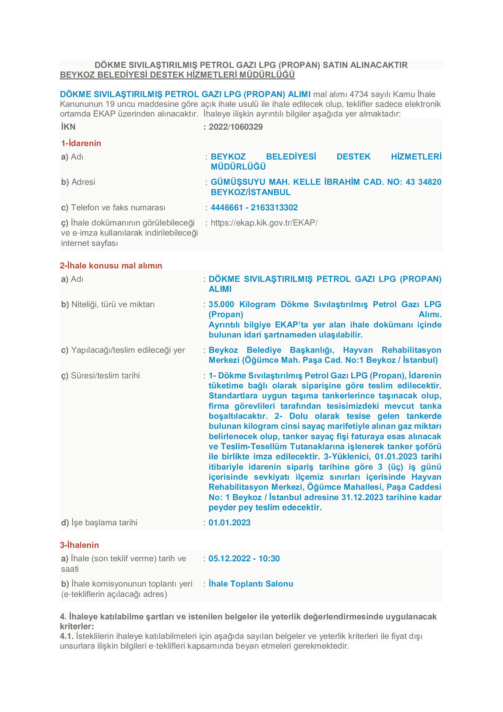 DÖKME SIVILAŞTIRILMIŞ PETROL GAZI LPG (PROPAN) ALIMI