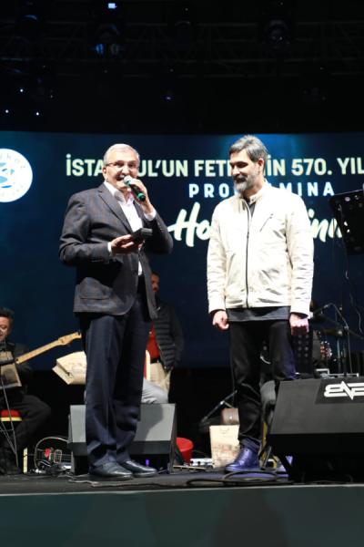 Beykoz Sahili’nde ilçe sakinleriyle buluşan sanatçı, “Benim Adım Türkiye”, “Haydi Anadolu”, “Bayrağı Elden Bırakma”, “Gelsen De Bir Gelmesen De”, “Bir Olana Bağlanmışım” şarkılarının yer aldığı fetih ruhunu yansıtan bir konser verdi.