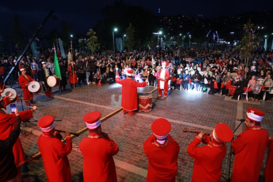 Fetih kutlamalarında sahne alan Diriliş Mehteri Grubu, ecdadın asırlar önce savaş meydanlarında düşmana korku salan marşlarını söyledi.