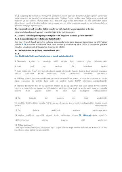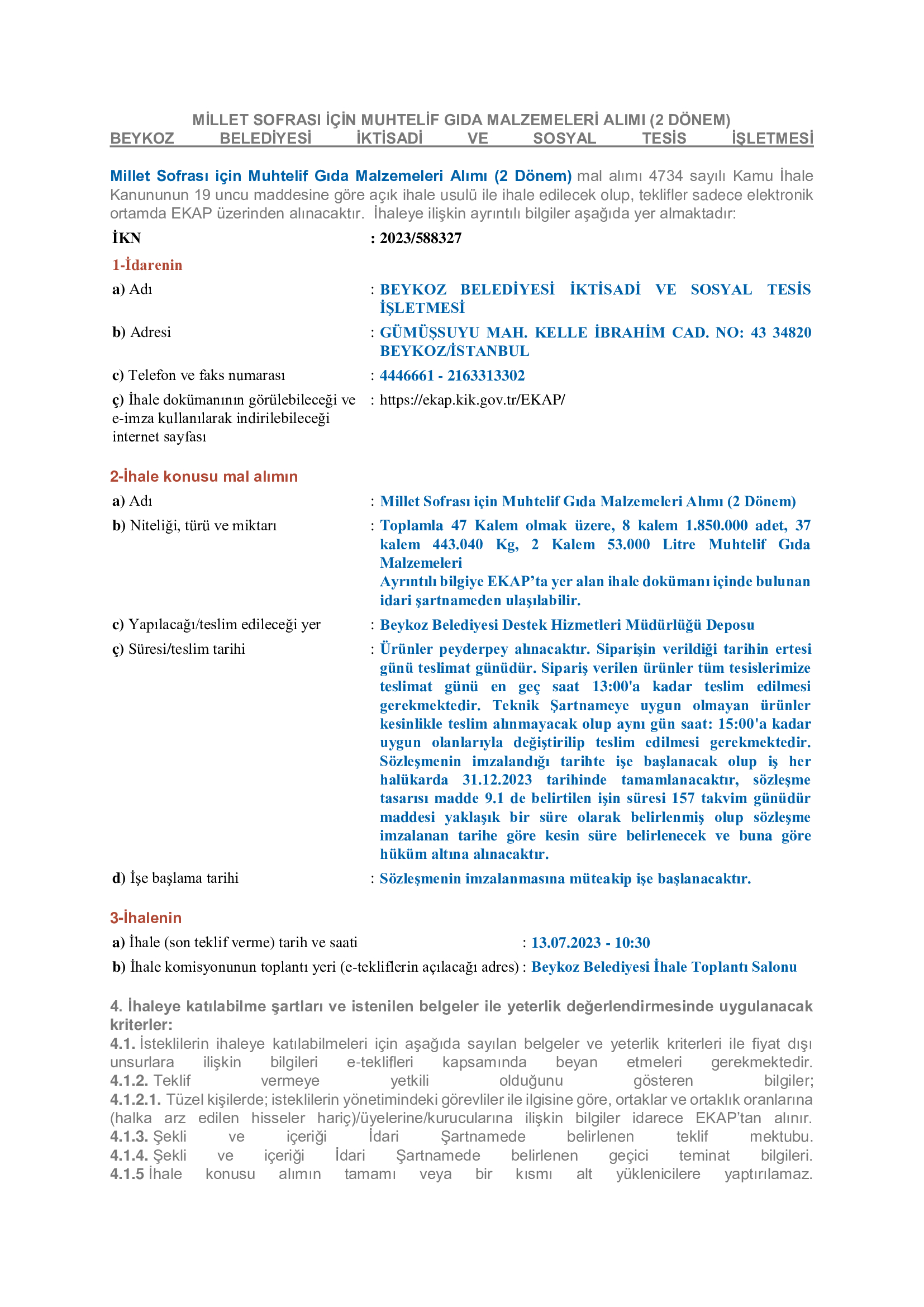MİLLET SOFRASI İÇİN MUHTELİF GIDA MALZEMELERİ ALIMI