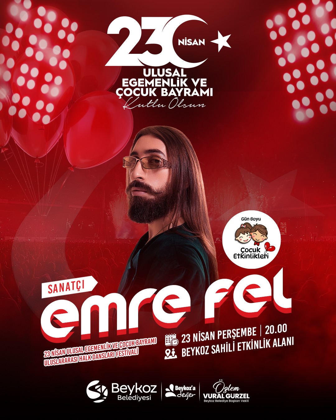 Bayram coşkusu, akşam saat 20.00’de sahne alacak olan Emre Fel konseriyle bayram coşkusu doruğa ulaşacak. Ayrıca Uluslararası Halk Dansları Festivali ile farklı kültürlerin renkleri Beykoz’da buluşacak.
