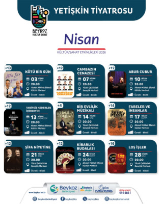Nisan ayı programında tiyatro severler için dikkat çeken eserlerde yer alıyor. "Kötü Bir Gün", "Cambazın Cenazesi", "Fareler ve İnsanlar" ve "Şifa Niyetine" gibi önemli eserler sahnelenecek. Oyunlar, Ahmet Mithat Efendi Kültür Merkezi ve Yücel Çelikbilek Gençlik Merkezi’nde izleyiciyle buluşacak.