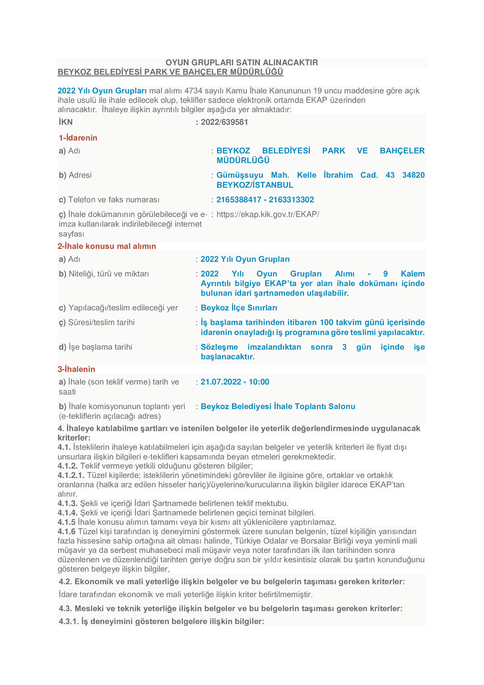 OYUN GRUPLARI SATIN ALINACAKTIR