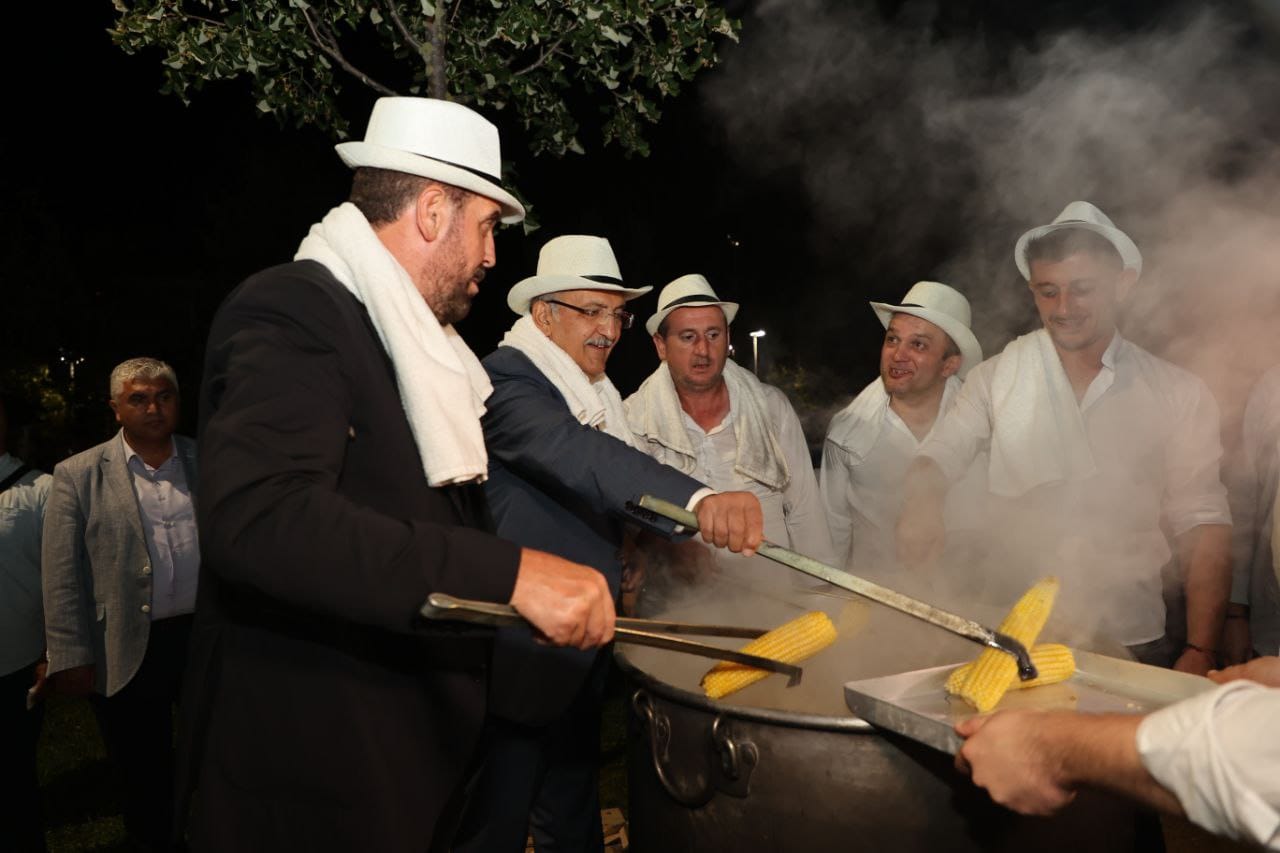 Beykoz Belediye Başkanı Murat Aydın ile AK Parti Beykoz İlçe Başkanı Hanefi Dilmaç da kazan başında geleneksel mısırcı şapkası takarak ilçe sakinlerine mısır ikram etti.