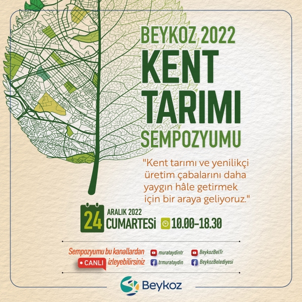 Şehrin geleceğine rehberlik edecek “Beykoz 2022 Kent Tarımı Sempzoyumu”, tüm akademik çevrelerin, girişimcilerin, kent tarımı uygulayıcılarının geniş katılımı göz önüne alınarak kuruma ait sosyal medya hesaplarından çevrimiçi olarak yayınlanacak.