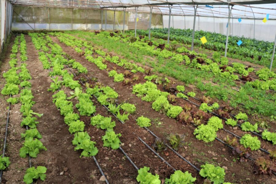 15 dönümlük arazide kurulu 13 serada, doğal tarımla üretilen mizunadan tatsoiye, yakut yapraklı maruldan, meşe yapraklı kıvırcığa tohumu dünyanın dört bir yanından getirilen ürünlerin hasadı kış boyunca sürüyor.